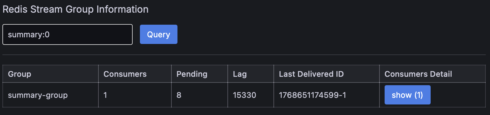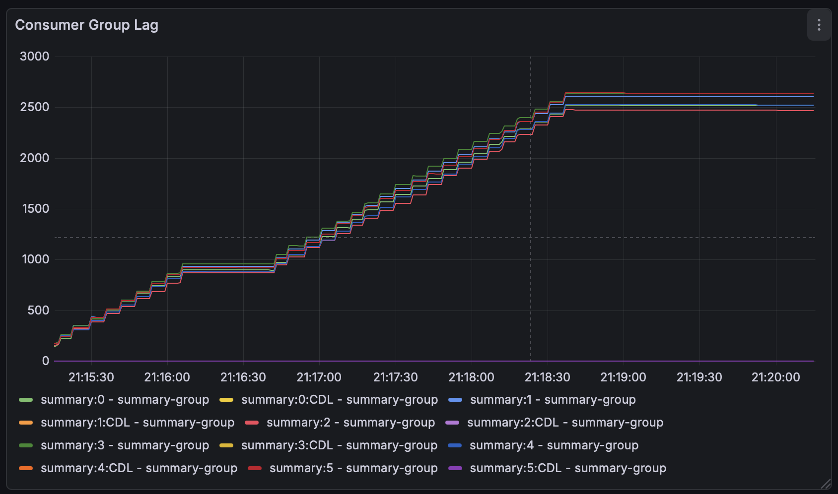 lag 가 쌓여있는 모습도 아래와 같이 모니터링 가능.