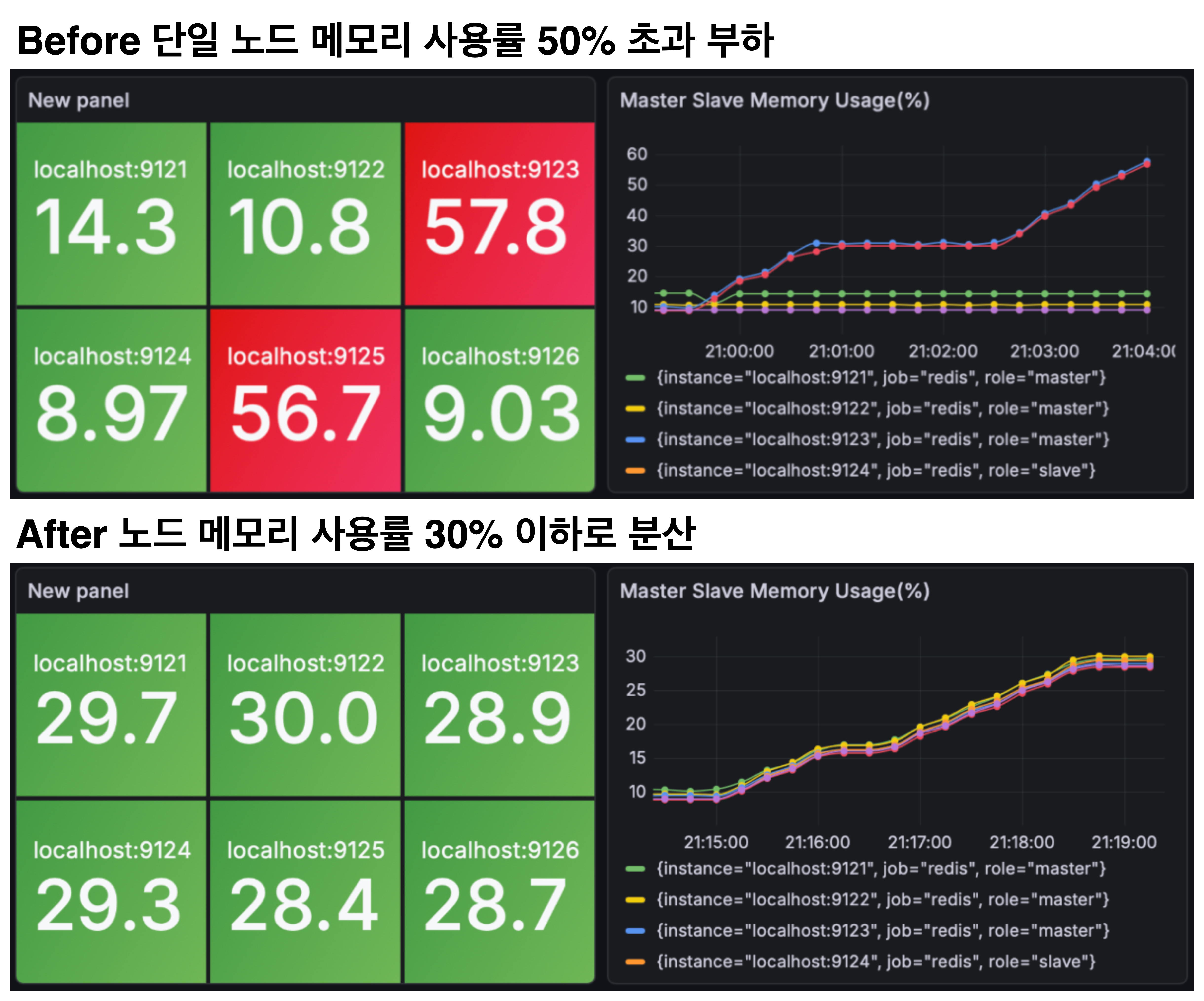 - 파티셔닝 전/후 메모리 부하 분산 확인